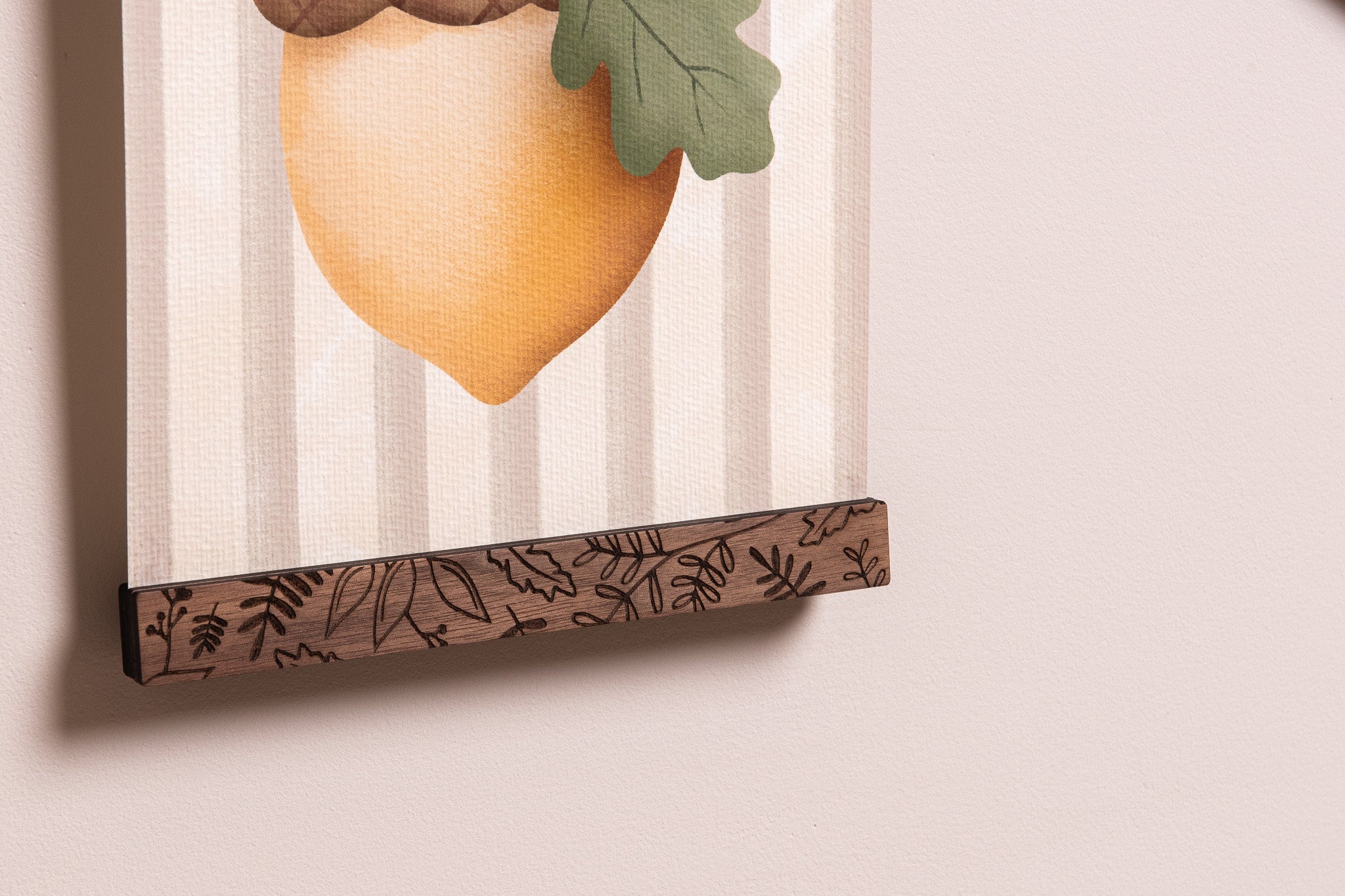 A simple, thoughtful way to display your favourite prints or your children's drawings. This rectangular wooden picture hanger features a delicate woodland leaf engraving and adds a soft, natural touch to your walls.