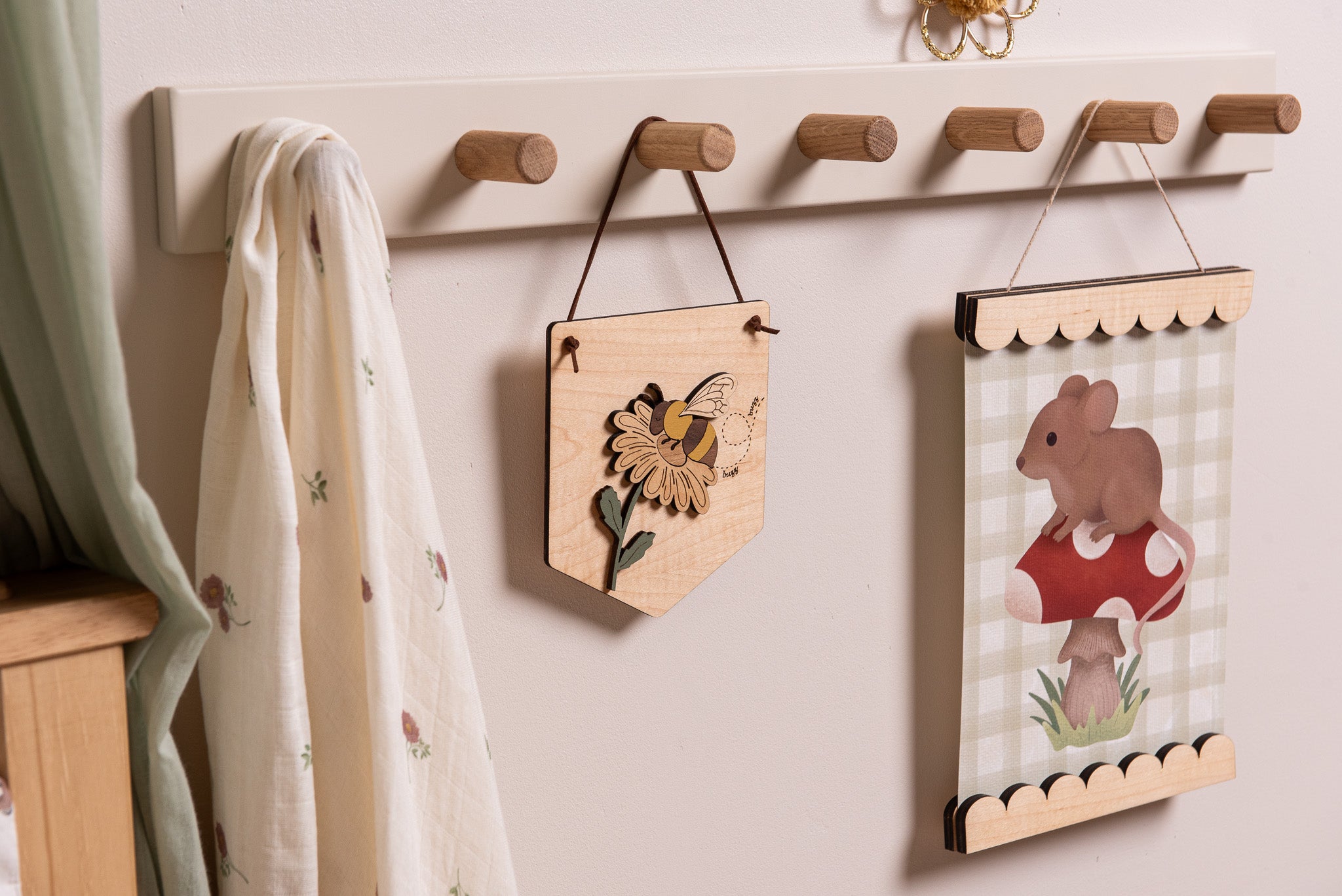 Bee and Daisy Hanging Wooden Pennant Flag