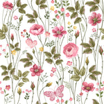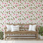 This beautiful pink rose wallpaper cleverly balances as vintage look with a modern, romantic style. The floral design is inspired by traditional English heritage design, but it can also work well in soft, feminine, modern interior design schemes.