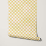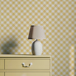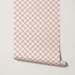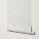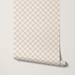 The soft gingham check wallpaper provides a cheerful and comforting geometric pattern that immediately evokes a sense of homespun charm and rustic simplicity. The design features a continuous diagonal grid of squares, creating a rhythmic, all-over pattern that is both familiar and visually engaging. The motif is executed with a gentle, diffuse quality, ensuring the pattern feels soft and warm rather than sharply graphic.