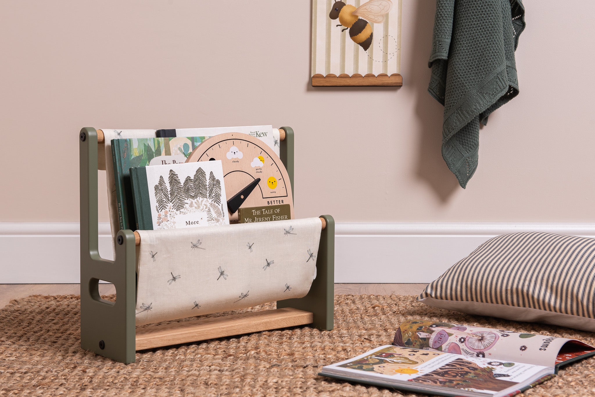 Our Nestie Book Hammock from our Waterside Collection, offers a beautiful and practical way to keep your children’s books safe and tidy. It’s perfect for the reading corner or a quick bedtime story.